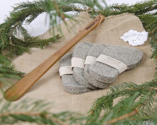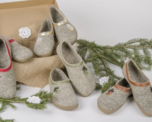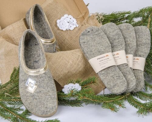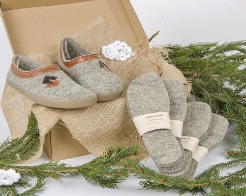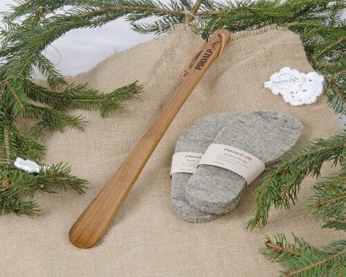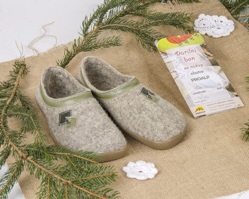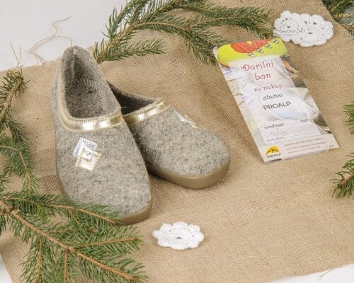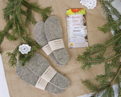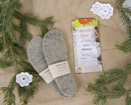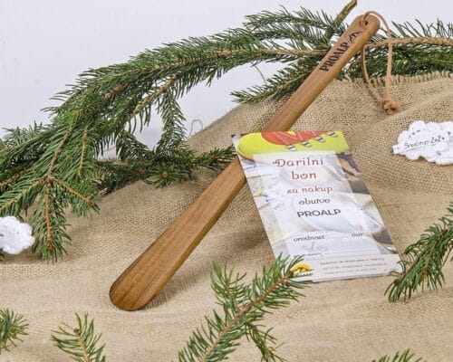 V Proalpovo ponudbo smo dodali različne kombinacije volnenih copat in vložkov za čevlje, lesenih žlic za obuvanje in darilnih bonov Proalp. Izbrane velikosti in vrednosti boste prejeli darilno dekorirane. Vse je izdelano v Sloveniji z veliko mero ročnega dela.