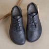 - They are shaped like feet. The forefoot part forms a shoe wide enough for us to step with the whole soles of the feet on the ground, and all toes have enough space to spread and move. Particular attention is paid to the front inner curve of the shoes, which should provide ample space for the toes, for an active gait.