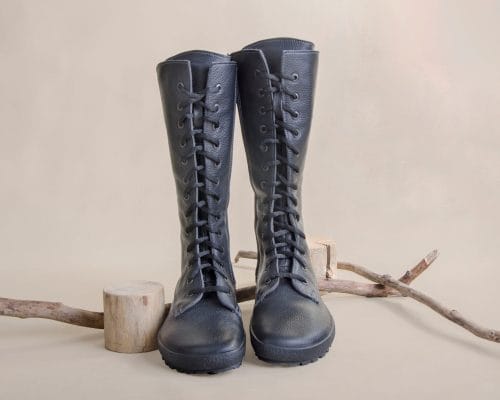 They are shaped like feet. The forefoot part forms a shoe wide enough for us to step with the whole soles of the feet on the ground and all toes have enough space to spread and move. Particular attention is paid to the front inner curve of the shoes, which should provide ample space for the toes, for the active gait.