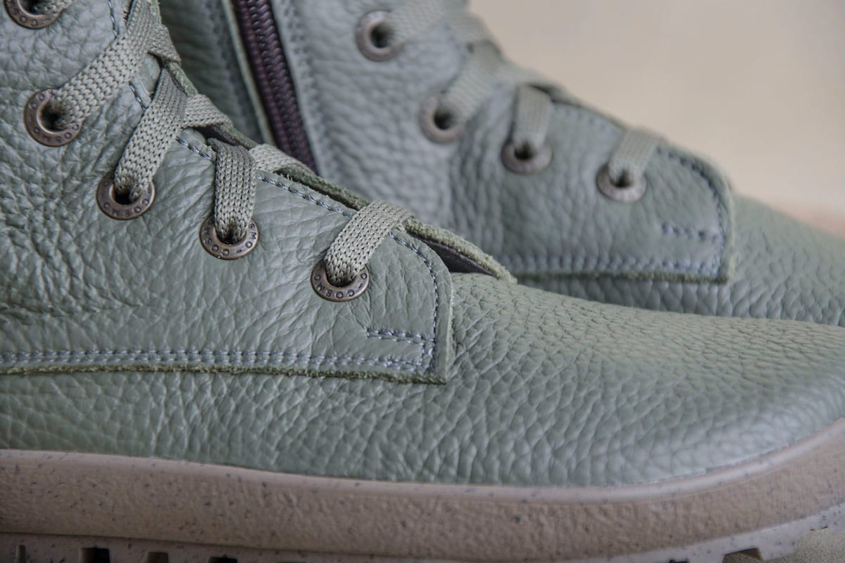 Soft leather (optionally microfiber) is used for the upper part and the insole, consisting of wool and jute compound, which regulates the temperature and insulate the feet from heat and cold. The natural materials create a breathable antiseptic shoe environment.