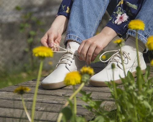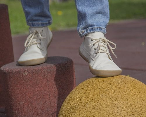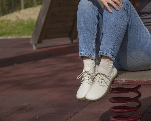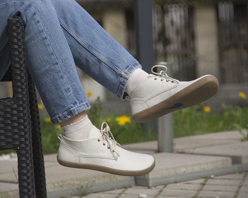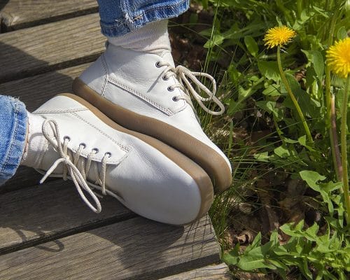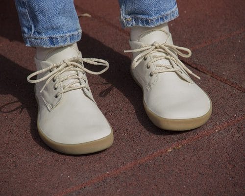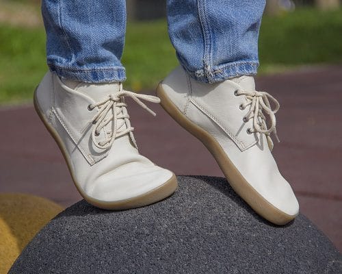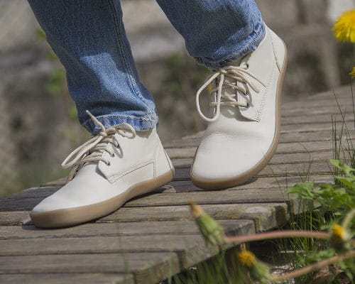 They are shaped like feet. The forefoot part forms a shoe wide enough for us to step with the whole soles of the feet on the ground and all toes have enough space to spread and move. Particular attention is paid to the front inner curve of the shoes, which should provide ample space for the toes, for the active gait.