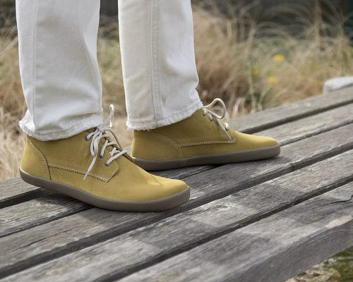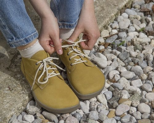 They are shaped like feet. The forefoot part forms a shoe wide enough for us to step with the whole soles of the feet on the ground and all toes have enough space to spread and move. Particular attention is paid to the front inner curve of the shoes, which should provide ample space for the toes, for the active gait.