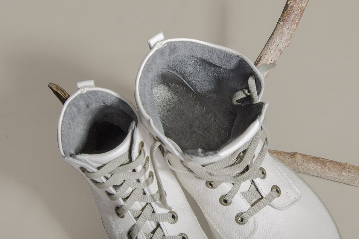 Za gornji del in podlogo uporabljamo mehka usnja, za notranjik pa 6-milimetrski sloj volnenega filca, ki je tudi v sodobnem času najboljši izolator pred mrazom in vročino.