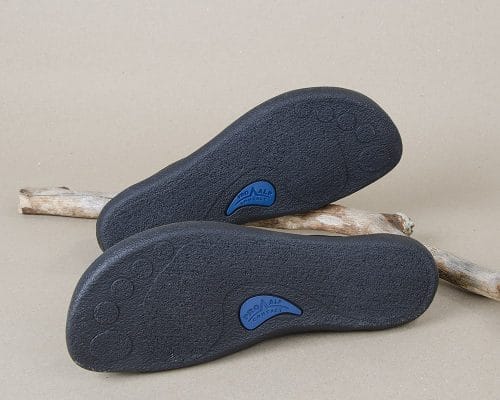 They are shaped like feet. The forefoot part forms a shoe wide enough for us to step with the whole soles of the feet on the ground and all toes have enough space to spread and move. Particular attention is paid to the front inner curve of the shoes, which should provide ample space for the toes, for the active gait.