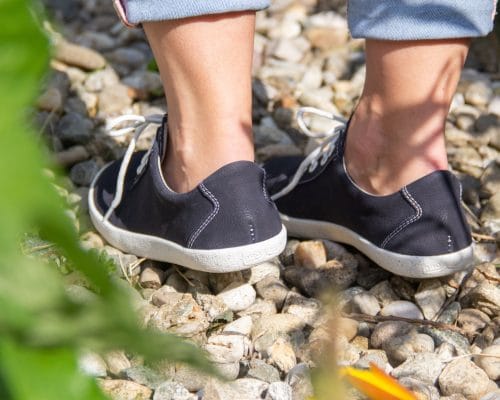 Pri razvoju čevlja smo želeli doseči, da se med obremenitvijo pri koraku stopalo prosto postavi po podlagi brez stranskih utesnitev. S tem ob vsakem koraku krepimo stopalne mišice in preko njih mišice nog, hrbtenico in celotno telo.
