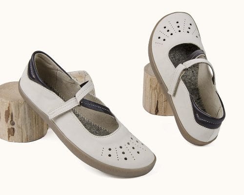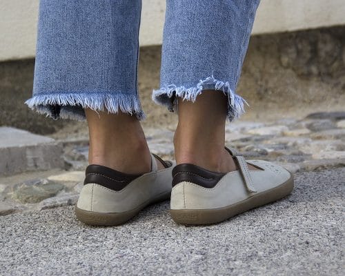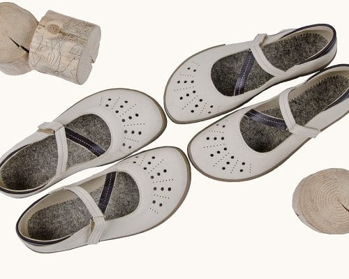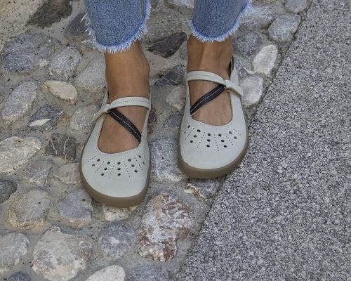 Bosonoga balerinka je odprt čevelj, pri katerem pa s premišljeno nameščenima fleksibilnima paščkoma zagotavljamo enako dober oprijem nog kot pri zaprtih bosonogih čevljih Contact.