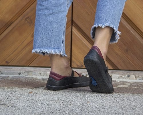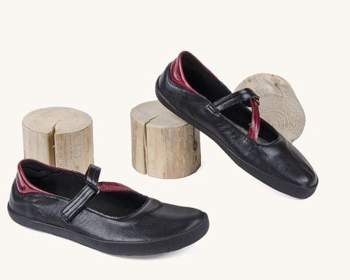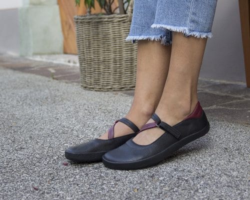 Bosonoga balerinka je odprt čevelj, pri katerem pa s premišljeno nameščenima fleksibilnima paščkoma zagotavljamo enako dober oprijem nog kot pri zaprtih bosonogih čevljih Contact.