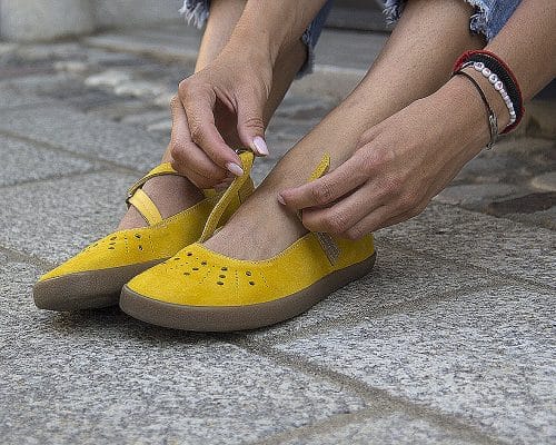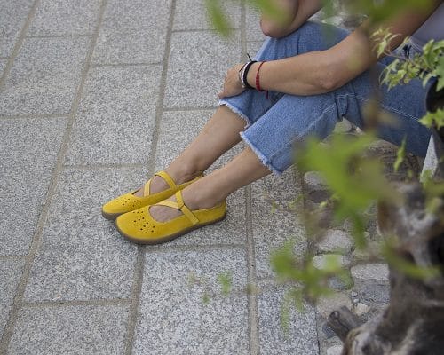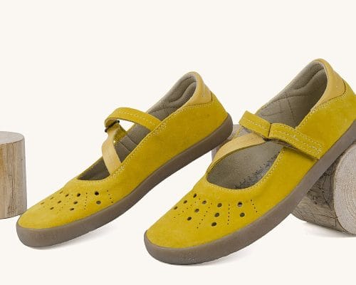 Bosonoga balerinka je odprt čevelj, pri katerem pa s premišljeno nameščenima fleksibilnima paščkoma zagotavljamo enako dober oprijem nog kot pri zaprtih bosonogih čevljih Contact.