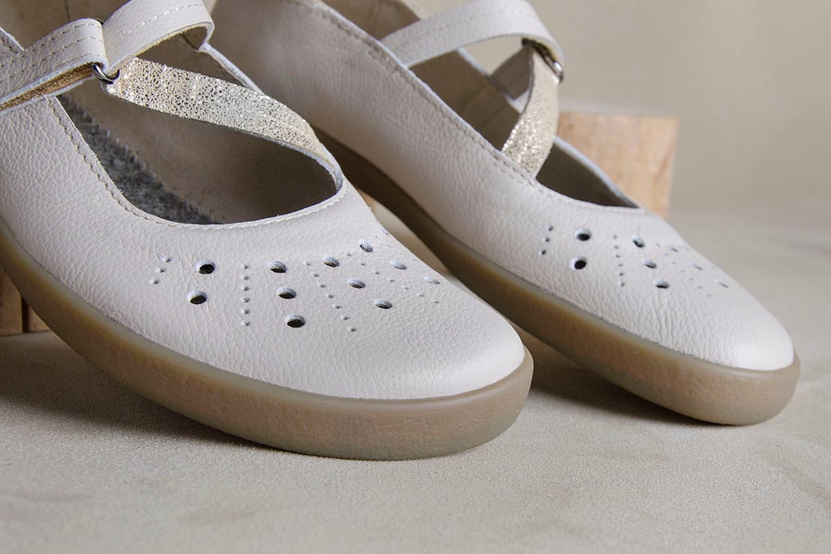 Premišljeno nameščeni paščki zagotavljajo, da se balerinke enako dobro oprimejo stopal pri hoji kot zaprti čevlji.