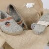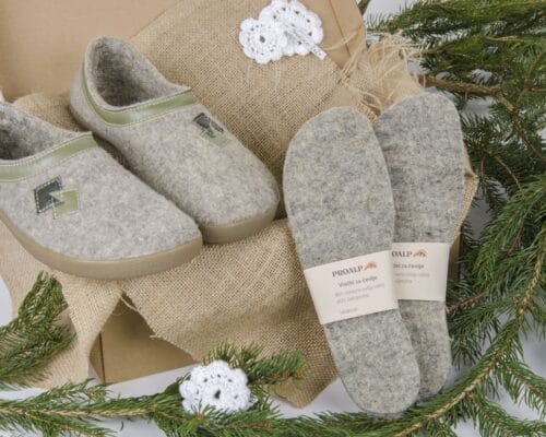 Copati in vložki so sestavljeni iz mešanice naravne ovčje volne in jute. Ker je volna obdelana na nizki temperaturi, se je tekom pridelave ohranila vsebnost lanolina, ki ima veliko dobrih lastnosti: odbija pršice, bakterije, plesen, viruse.