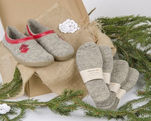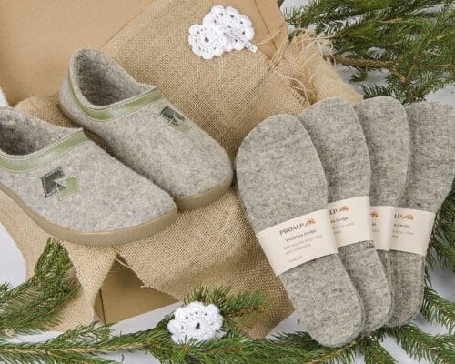 Copati in vložki so sestavljeni iz mešanice naravne ovčje volne in jute. Ker je volna obdelana na nizki temperaturi, se je tekom pridelave ohranila vsebnost lanolina, ki ima veliko dobrih lastnosti: odbija pršice, bakterije, plesen, viruse.