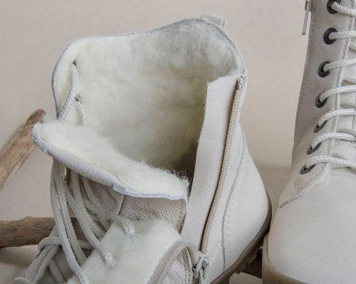 Za gornji del in podlogo uporabljamo mehka usnja, za notranjik pa 6-milimetrski sloj naravne ovčje volne, ki je tudi v sodobnem času najboljši izolator pred mrazom in vročino.