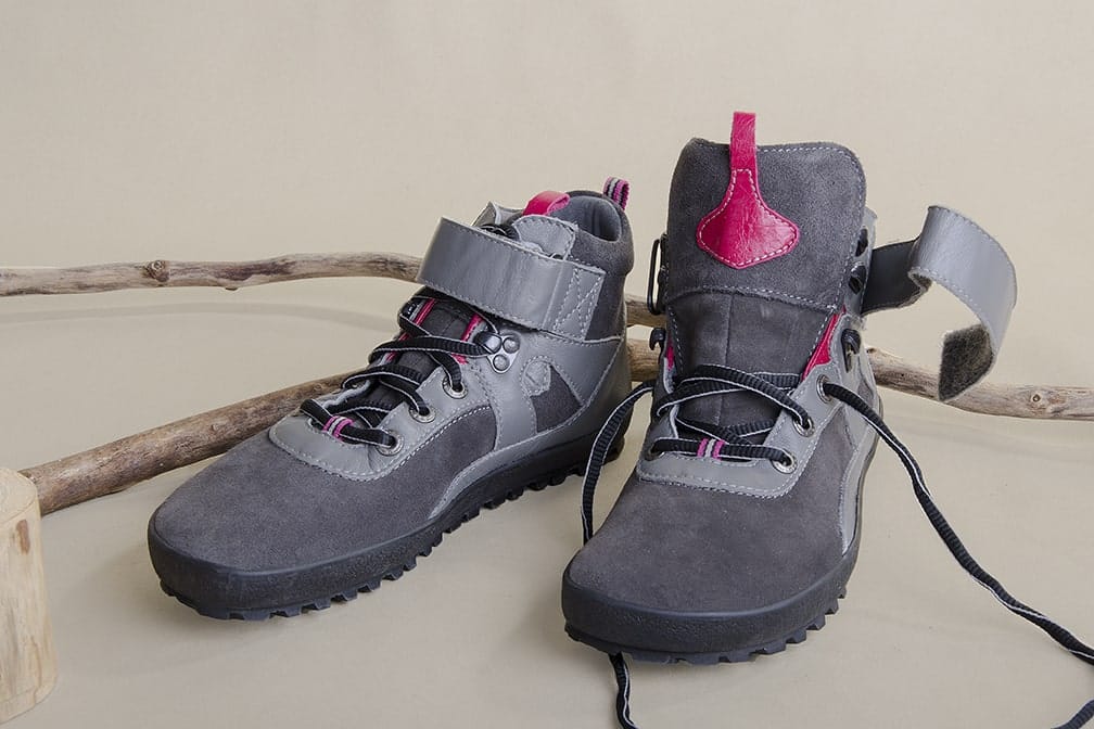 Nastavljiv velcro pašček okoli gležnjev objame in stabilizira položaj stopal v čevljih. Po želji lahko pašček tudi odstranite. V kombinaciji z ravnim in tankim podplatom ti čevlji omogočajo stabilno pozicijo stopal v čevljih tudi po hoji po neravnem terenu, še zlasti pri hoji navzdol.