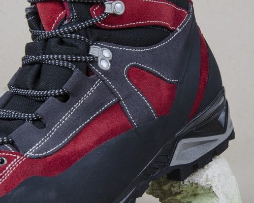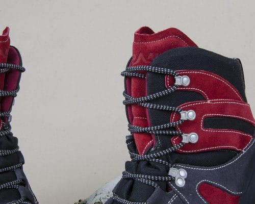 Kljub ojačitvam smo čevelj zasnovali tako, da ga lahko dobro zategnemo in s tem omogočimo dober oprijem čevlja z nogo,kar je zelo pomembno pri bolj drznih turah. Za dober oprijem smo poskrbeli tudi z blokirno zanko pri vezalkah, s pomočjo katere po zategovanju prednjega dela zaustavimo drsenje vezalk ter nato zategnemo še zgornji dve zanki.